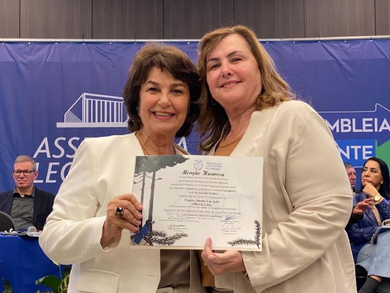 Em nome do Projeção e ABSER - Associação Beneficente das Senhoras de Entre Rios, expressamos nosso mais sincero agradecimento à deputada estadual Cristina Silvestre pela honrosa indicação que resultou na homenagem recebida durante a Sessão Itinerante da Assembleia Legislativa do Paraná, realizada em Guarapuava no dia 1º de outubro, no Centro de Eventos Cidade dos Lagos.