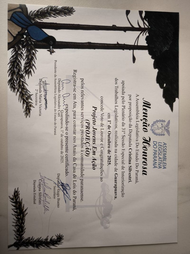 Receber a Menção Honrosa é motivo de grande orgulho para todos que fazem parte do Projeção/ABSER. Esta distinção representa não apenas o reconhecimento pelo trabalho que desenvolvemos em prol da comunidade, mas também um incentivo para seguirmos firmes em nossa missão de promover transformação social por meio de ações concretas e comprometidas com o bem coletivo.